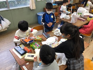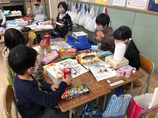 ボールのかたち!さいころのかたち!はこのかたち!つつのかたち!の4つのグループに分ける子どもたち!