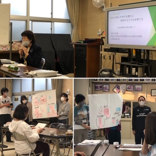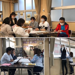 研究授業のあとの討議会!大人の学びです。小グループに分かれ対話しました。