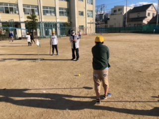 真っ直ぐにボールを打つコツを教えてもらう子どもたち。「先生!真に当たってないなあ。」と私も教えてもらいました。音が違うと教わりました。奥が深いです!