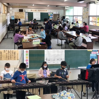 職員室にいると、素敵な音色が届きます。隣の音楽室から子どもたちの合奏が心地よく聴こえてきます。