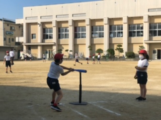とっても爽やかな空の下、子どもたちがティーボールにチャレンジしています!