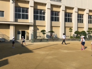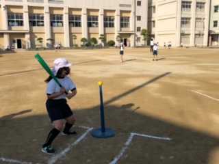止まったボールにうまくヒットするのはなかなか難しいです!子どもたちはお互いにアドバイスしながら、楽しんでいました!