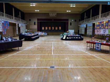 子どもたちの作品が体育館に搬入されました!圧巻の景色です!少し遠目からの写真は意図的に撮影しました!ぜひ、明日もしくは明後日に来校いただき、子どもたちの作品をお楽しみください!