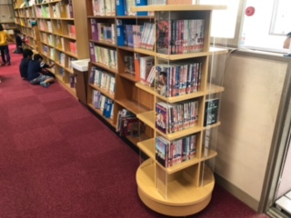 新しい本棚も登場しました!回転式になっていて、とてもおしゃれで素敵な本棚です!