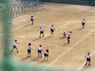 とても元気よく、ボールを追いかけ!ボールから逃げ!イキイキと楽しんでいました!子どもの歓声には元気をもらえますね!