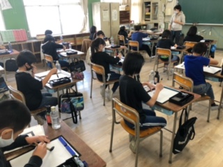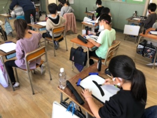 筆を持つ手が半紙の上を走ります!毛筆にチャレンジする子どもたち!