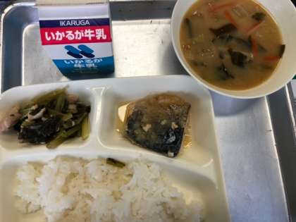 「さばのみぞれかけ」「おみそ汁」「こまつなの煮びたし」です。