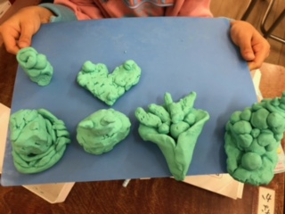 子どもたちは、算数プリントや創作粘土づくりにチャレンジしていました!プリントの答え合わせも自分でします!それぞれの課題に応じて、自分から進んでチャレンジする子どもたち!粘土によるものづくりも個性あふれて素敵でした!