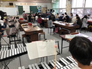 職員室に素敵な合奏が流れてきました。音楽室では子どもたちが「宿命」を演奏していました。
