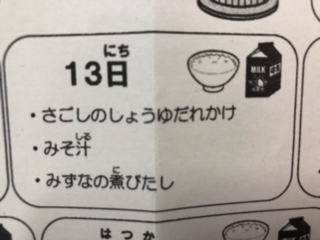さごしのしょうゆだれかけ!は名前だけでも美味しそうでしょう!美味しかった!みずなもアッサリ味で食べやすかったです!
