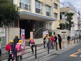 寒さで少しうつむきかげんの子どもたちも友達の声に頭をあげて、あいさつを返します。