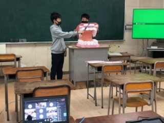 健康委員会のみなさんが、クイズや模型を使って、歯の磨き方、歯の大切さなどを伝えることができました。細部にわたった手作り模型はとても見やすくて、わかりやすかったです。クイズも興味をひく内容で楽しめました!