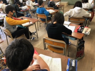 これまでの経験から、思いつくことばをいくつも見つけていきます。以前学習した物語文から探し出そうとする意欲的な姿がたくさん見られました。