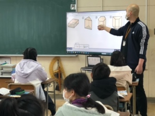 立体の特徴について学ぶ子どもたち!辺と頂点と面の数や形に注目しながら、近くの友だちとも話し合いながら見つけていきます!