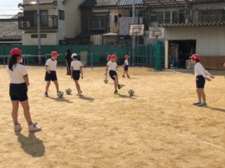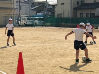 朝との気温差が10度以上あり、昼間は陽気の広がる運動場では、子どもたちが元気よくボール運動に取り組んでいます!