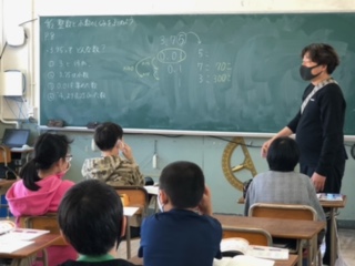 「3.75って、0.01を何個集めた数でしょうか?」とっさに答えが出る子どももいれば、???が飛んでいる子どももいます。わかった子どもには、「どうして、そうなるの?」とその理由を自分の言葉で説明させます。すると、すんなりとその理由を言える子どももいれば、うまく説明できない子どももいます。ここが学び合いの妙!自分がわかっていても、わからない人にわかるように伝えることが大事!つまり、わかった人がわからない人に伝えることで、わかり直しをするのです。そして、人に伝える(教える)ことが最も学びが定着するのです!