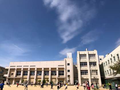 ボールあて?、おにごっこ、一輪車、うんてい遊び、バスケットなどなど、思い思いに楽しむ子どもたち。ぶつかりそうで、ぶつからない。さすが子どもは身が軽いです。教職員もいっしょに遊ぶ姿が素敵でした。子どもは遊んでくれる大人が大好きですね。