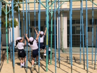 うんていや登り棒、ジャングルジムなど、体を支える運動や平衡感覚を養う運動などに汗を流していました。