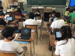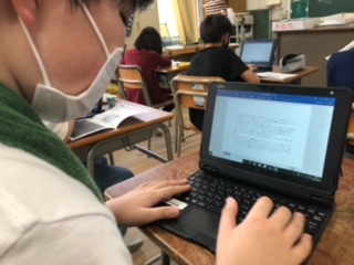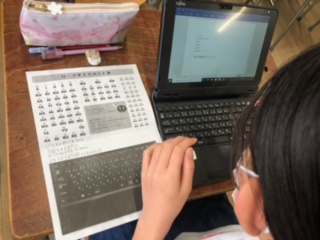 子どもたちはローマ字表を手元に置いて、自己紹介をローマ字打ちで入力しています!