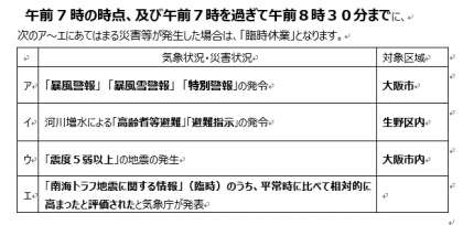 ※「大雨警報」は「学校休業」とはなりませんのでご注意ください。