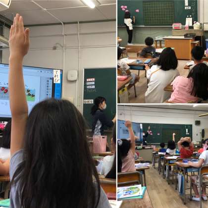 手をまっすぐに挙げ、答える姿がとてもすてきでした。日に日に成長する子どもたちです。