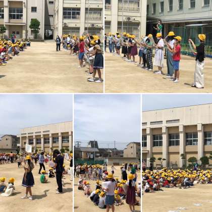 避難訓練の後は、地区児童会による「地区別整列位置」を確認しました。もしもの時には地区ごとに帰宅する場合があります!その時のためのグループ確認です!