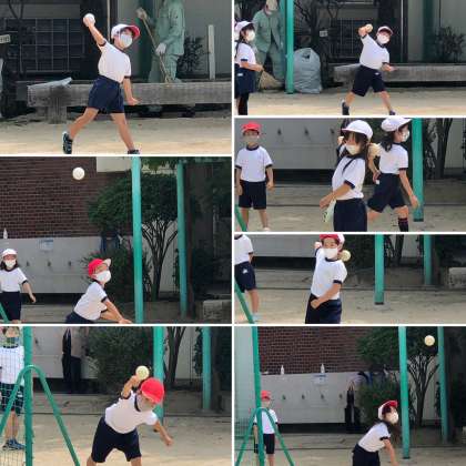 今日一日は運動場がソフトボール投げ一色です!
