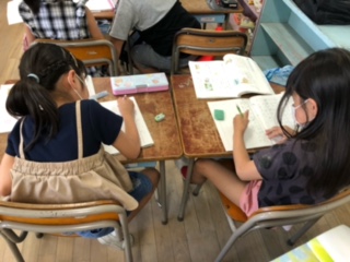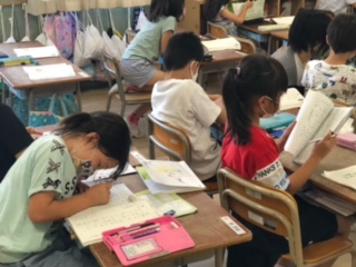 子どもたちは、カタカナことばについて学んだ後に、自分でカタカナことばを使って文づくりをしています!