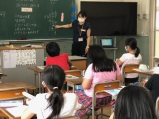 子どもたちはノートに板書を丁寧に写しています!たてる位置や下す位置に注意して、問題を解く子どもたちでした!