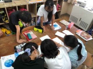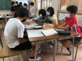 「小学校は制服?それとも私服?」について、それぞれのメリットやデメリットをグループで話し合いました。