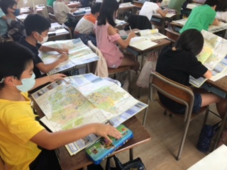 さらに先生たちの自宅からの交通手段を考えるコーナーもありました!子どもたちは具体的なルートを確かめながら、大阪市内をめぐりました!
