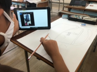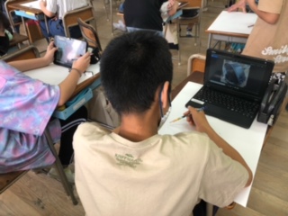 タブレットにお気に入りのランドセルの写真を取り込み、写生の活動に入っています。