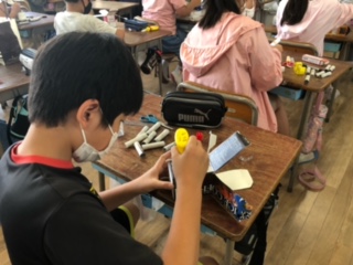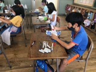 牛乳パックと新聞紙を使って、何を作っているのかな?とのぞいた教室風景でした!