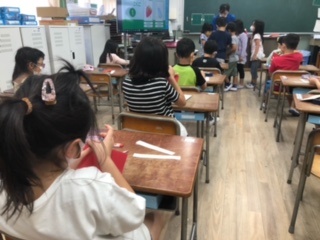 子どもたちが画用紙とセロハンテープを使って何かを作成中でした!