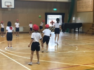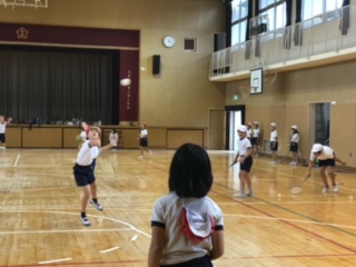 体育館いっぱいに広がって、シャトルを追う子どもたち!また、逃げ回りながらも、相手からのボールをキャッチして応戦する子どもたち!