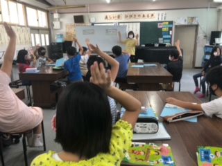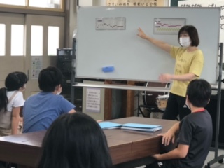 もう一曲は「ライオンの行進」です!主な旋律が図形で表されています!その動きから曲のリズムや雰囲気をつかむ子どもたちです!