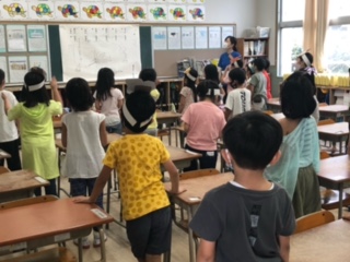 子どもたちは後ろの黒板に向かって、みんなで音読していました!