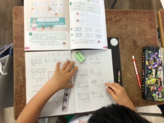 子どもたちは練習問題に集中して取り組んでいます!位を揃えること、くりあがりやくり下がりに気をつけること、など一問一問を丁寧に解き続ける子どもたちでした。教室にとってもいい空気が流れています!