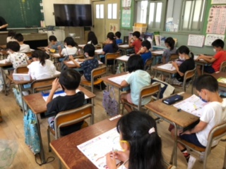 教室から音声のCD音が流れています。子どもたちは音楽の聞き取りテストにチャレンジしていました!