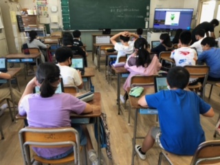 さすが高学年ともなるとタブレットの扱いは慣れたもの!一人の世界に入って、画面に食い入る子どもたちでした!