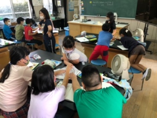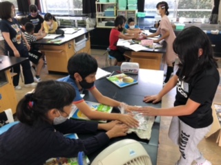 子どもたちはビニル袋に水を入れ、触ったり、押したりしながら確かめ合います!「へっこんだ!やわらかい!プニョプニョしてる!」などなど、感じたことを言葉にします!