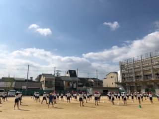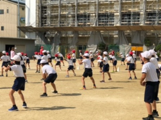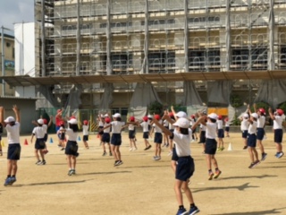 自分の立ち位置を確認した後は、音楽に合わせて体を動かします!なんとなくは動きがわかってきた子どもたちは、細かい動きに気をつけたり、大きな動きを目一杯表現したり、さらなる向上を目指します!がんばれ!