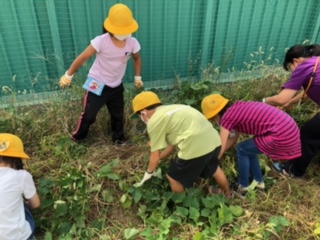 学習園で大切に育ててきた「さつまいも」の収穫です!大きなものは見当たりませんでしたが、子どもたちは自分の手で収穫することを楽しんでいました!