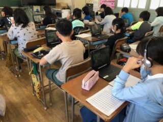 NHK for schoolを視聴しながらの学びです!子どもたちは真剣に画面に集中しています。具体事例を映像から知ることは、より身近に、自分ごととして捉えることができます。ここから自分の考えをどう持つかですね。