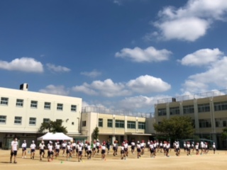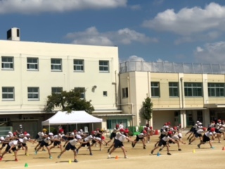 体型移動を各自がチェックします!体育館と違って広さもあり、戸惑う場面もありましたが、そこは高学年チームです!すぐに修正しながらマスターしていきます!正面から観ると、躍動感があふれます!本番まであと1週間!怪我なく、病気なく、万全の状態で臨んでほしいです!
