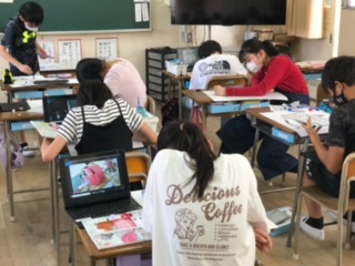 ランドセルにいよいよ色つけが始まりました!細かいところには、筆ではなく、爪楊枝を使って色をつける細かさ!タブレットで撮影した効果はてきめんで、細部にまでこだわった作品になりそうです!子どもたちの集中力がすごいです!