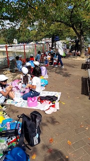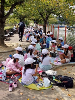 木陰を見つけて、子どもたちはお弁当とおやつを楽しんでいます!