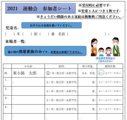 本日、子どもたちが「運動会の参加者シート」を持ち帰ります。