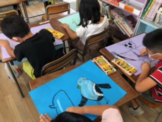 画用紙いっぱいにクレパスを使って動物を描きます!