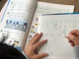 子どもたちは文章問題にチャレンジしています!あわせて!ぜんぶで!などの言葉に注意して、問題を解いていきます!ノートに書く字も上手になりました!いきいき学ぶ子どもたちの姿が印象的です!